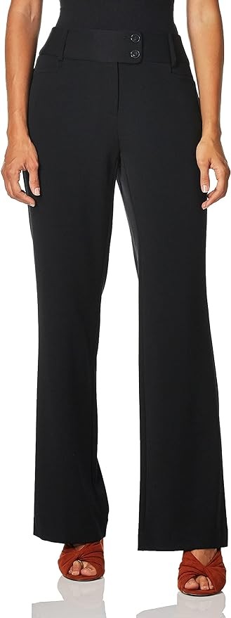 • AT THE OFFICE OR AFTER HOURS: Look sharp in these curvy dress pants for women that feature a slightly flared bootcut leg with a 20-inch opening, two functional front pockets, two back welt pockets, a zipper fly with double-button closure, and belt loops.