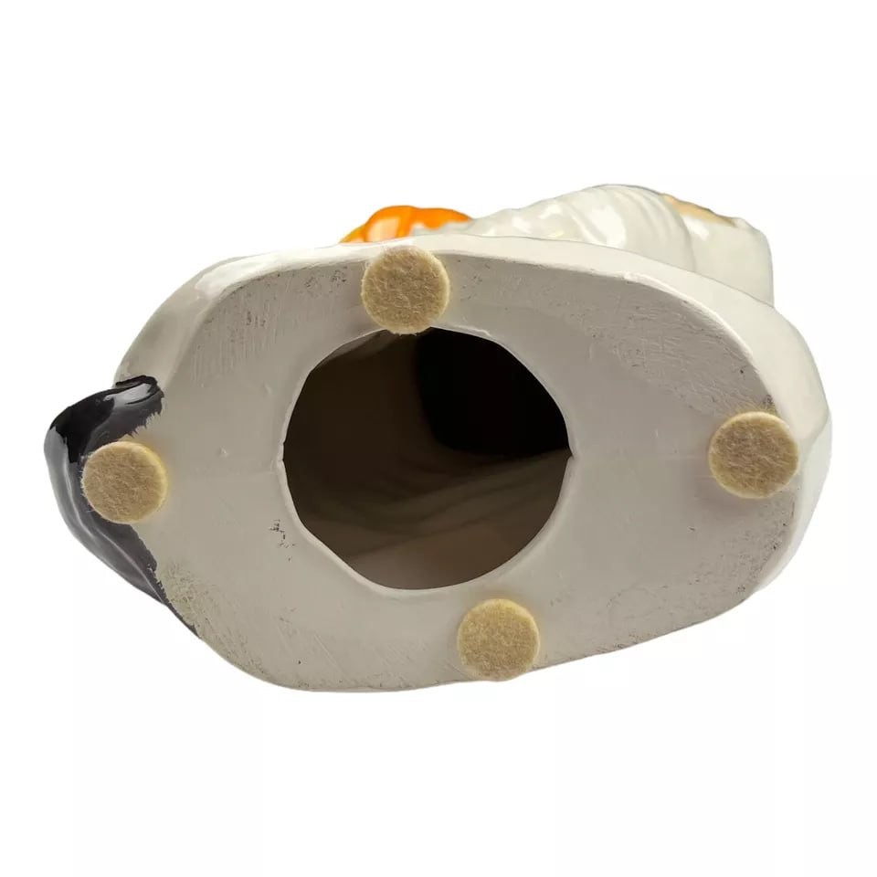 There is some crazing to the pumpkins hat.