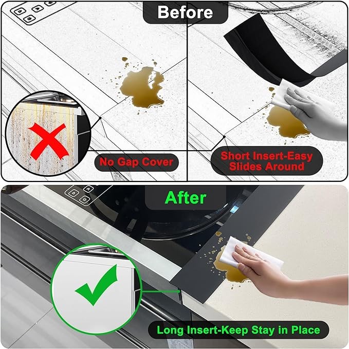 【 Suitable Measurement For Your Kitchen】: Size 25" x 0.5" x 2.25",suitable for 0.2-1.3 inch wide gap.Cover the gap between counter and stove top, appliances in your modern kitchen
