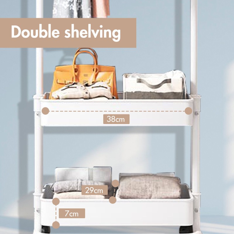 Stackable, w/Coat Hooks, Portable, Rolling, Hanging, With Baske, Clothes Hanging Bar
