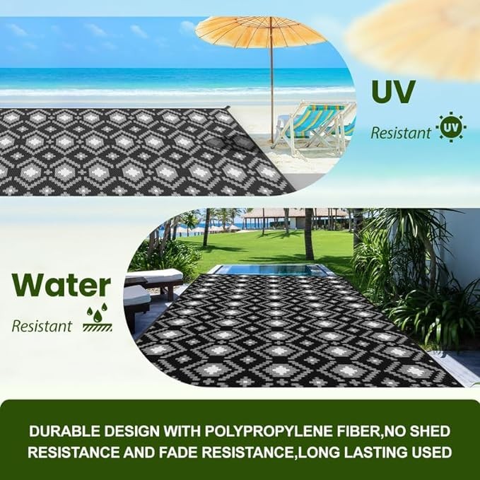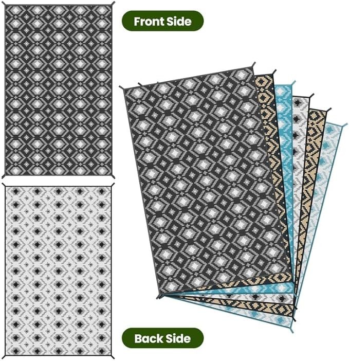 • ?Reversible Design: Our outdoor rugs feature a stylish reversible design with classic colors and patterns. Easily change the look of your outdoor space. Available in various sizes to suit different outdoor themes.Elevate any outdoor entertainment space with our versatile and functional rug. Perfect for patios, decks, gardens, beaches, picnics, RV campgrounds, garages, kids' rooms, and more. Adds style and practicality to any outdoor setting.