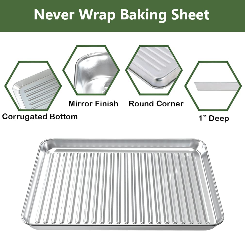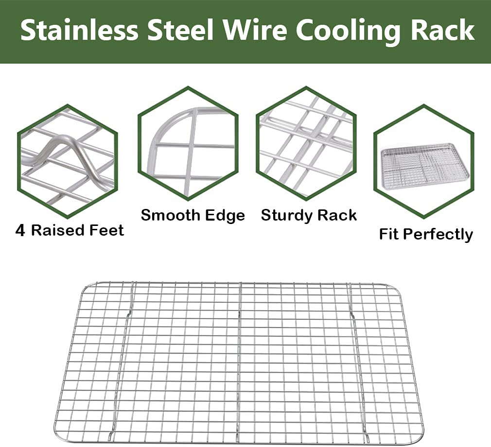 ROTTAY Quarter Baking Sheet Pan with Wire Rack Set [2 Pans + 2 Racks], Stainless