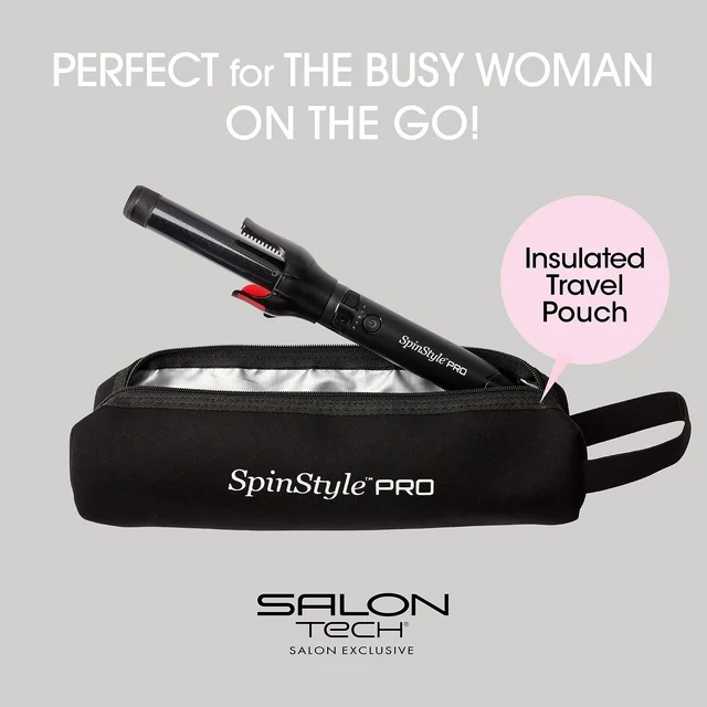 Bring the professional look of the hair salon into your home by creating flawless curls in a fraction of the time with our SpinStyle PRO Automatic Curling Iron -1 Inch . Automatic rotating carousel with smooth curl technology makes it easier than ever to wrap your hair around the ionic ceramic barrel while avoiding heat damage and frizz. Heats up quickly and safely with 5 adjustable temperature settings, making it the perfect tool for any hair type. No tangly clamps like an old-fashioned curling iron that grabs onto your hair and makes a frazzled mess. Patented smoothing comb detangles your hair as you style, while the silicone tabs press your hair neatly against the barrel for a smooth finish. Bi-directional spinning wand allows you to curl inward or out with the touch of a button. Curl small or large sections of hair for a versatile looking style. Ergonomically designed with easy one-touch controls so you can do all your styling with one hand. More lightweight and compact than ever, so you can take it with you wherever you go for a quick touch up, or on your next business trip or vacation. Get long-lasting curls thatll stay perfect from day to night. Put the stylist in your hands and achieve salon-quality results every time with this state-of-the-art automatic curling wand.