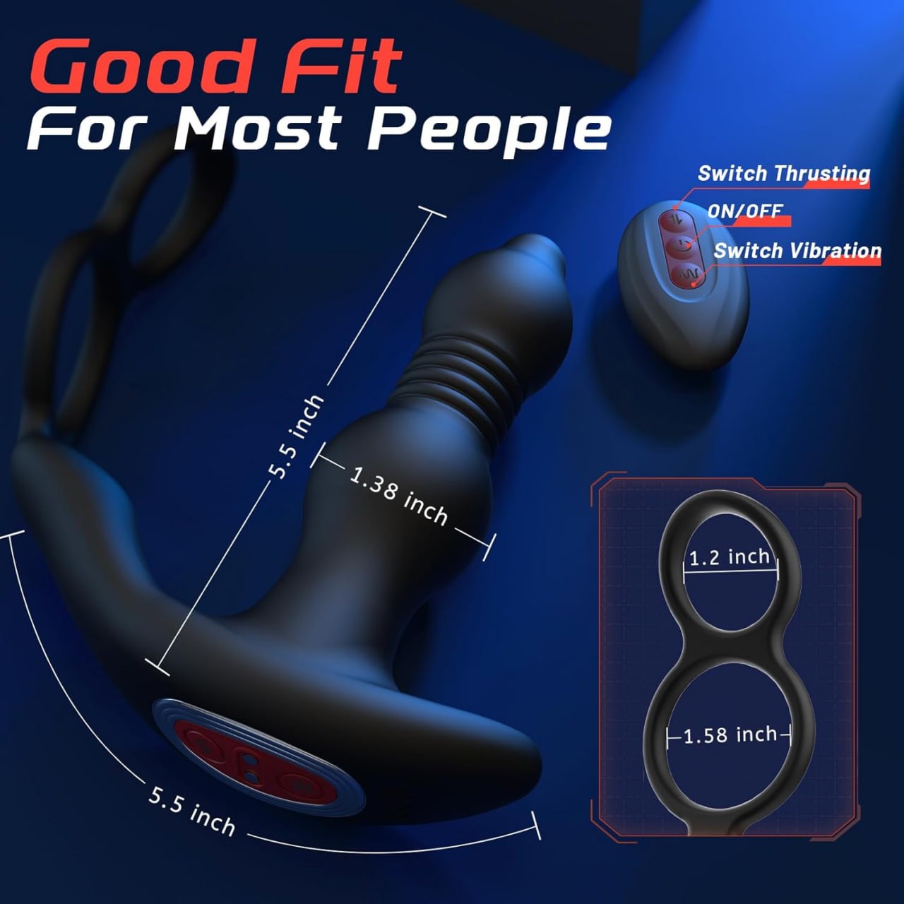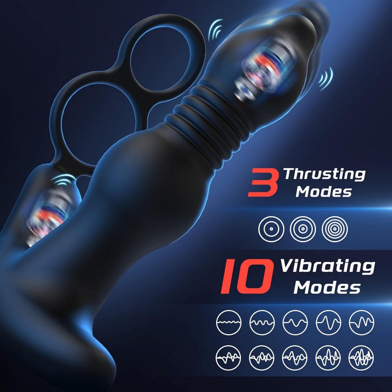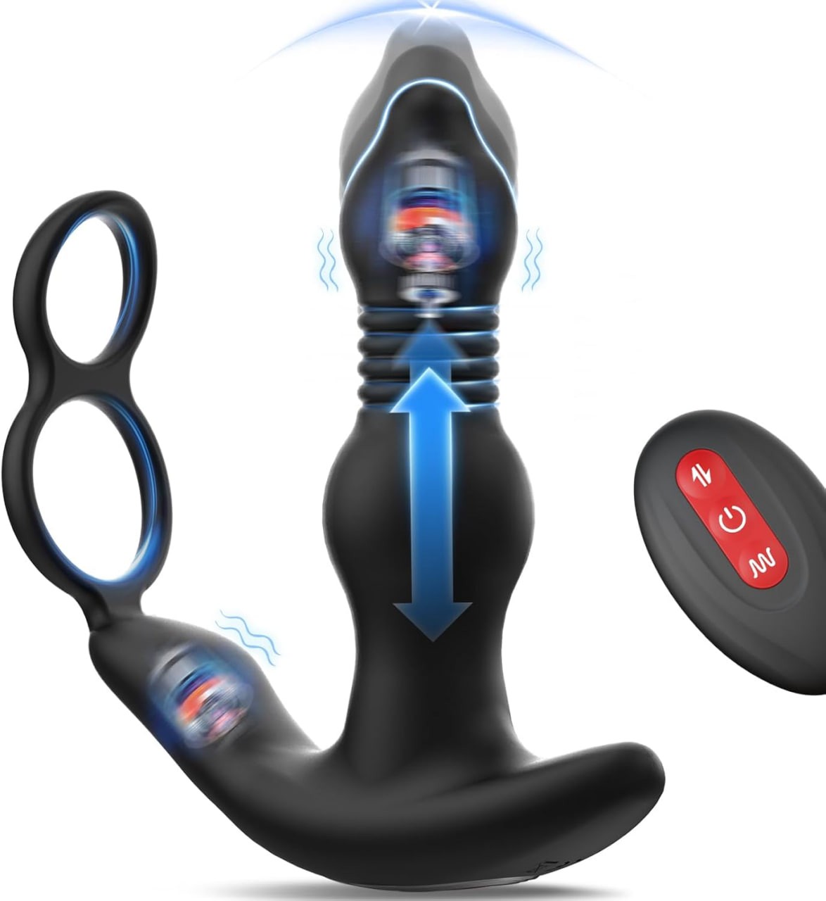 【3 in 1 Anal Vibrator Sex Toys】This anal toys combines a prostate massager, anal plug vibrator and cock ring in one. Thrusting and vibrating male sex toy finds and hits your P-spot with amazing stimulation, vibrates the perineum outside of the rippling base target to enhance your pleasure, the elastic silicone cockring helps you maintain a rock-solid erection. All in all, this couples sex toy can simultaneously help you reach climax and massage your prostate.