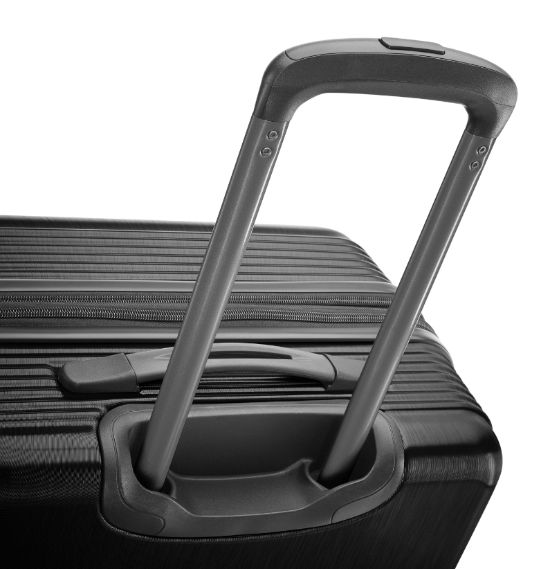 • Push button multi stage handle system with retractable top and side carry handles