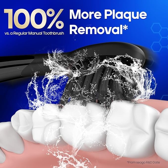 • [2 Minute Timer and IPX7 Waterproof] According to professional recommendations, using a rechargeable electric toothbrush with a timer and 30-second interval reminders is the suggested brushing schedule. Good brushing habits will benefit you for a lifetime. You can use the SEAGO electric sonic toothbrush safely while bathing or showering thanks to its IPX7 waterproof design.