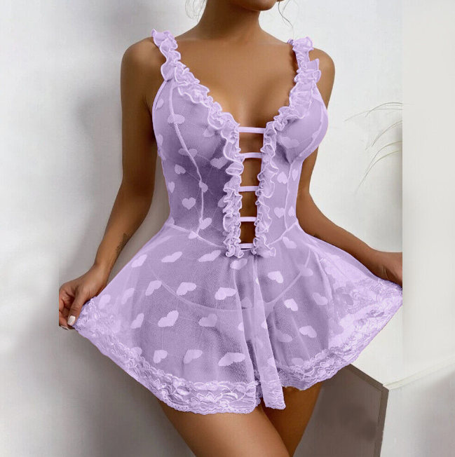 Sexy Women Mesh Sheer Lingerie See-through Nightdress Babydoll Sleepwear Pajamas