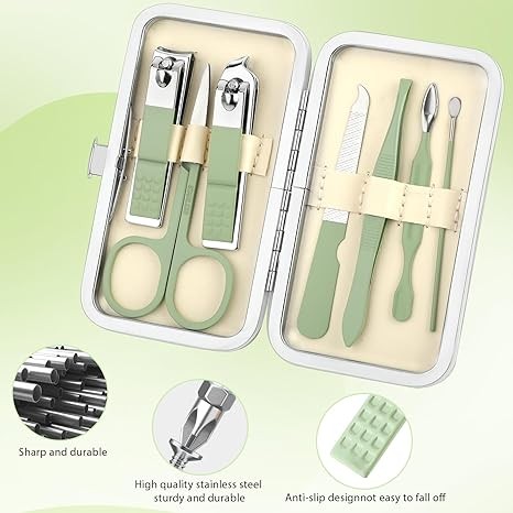 simarro Travel Manicure Set, 7 in 1 Manicure Pedicure Kit for Women, Stainless Steel Nail Clipper Personal Care Nail Tools Kit for Home Workplace Outdoor Travel(Matcha Green)