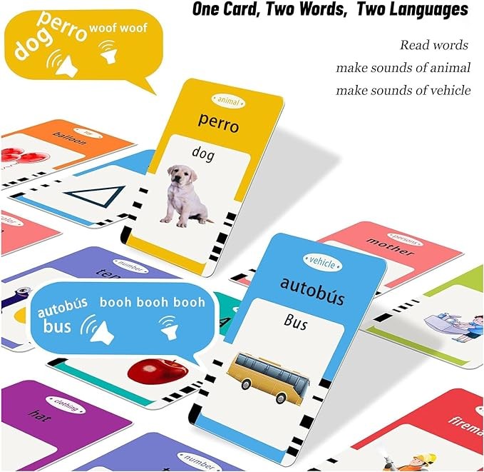 Skyour Toddler Toys Spanish & English Talking Flash Cards 3 4 5 6 Year Old Boys and Girls, 224/510 Sight Words,Montessori Toys,Autism Sensory Toys,Learning Educational Toys (Bilingual-224)