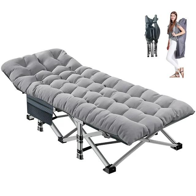 2 Sided Comfortable Mattress: Equipped with 2 Sided Mattress, Reversible Cushion, you can sleep more comfortably in this portable folding camping bed. In hot weather, the cushion can also be taken away for the breathable. 3.3 inch thickened pearl cotton pad (keep warm in autumn and winter).