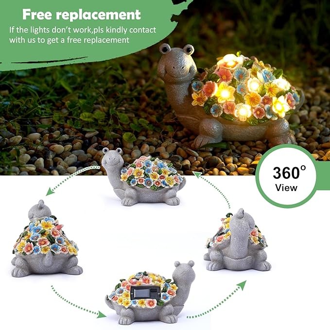 • 【Beautiful Home and Garden Decoration】The solar turtle decor statues with flowers suitable for garden decor/home decor/house decor/lawn ornaments/front porch decor/yard decorations outdoor/back decor/backyard decor.
