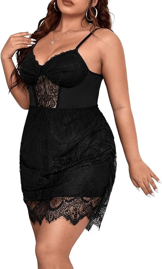 SOLY HUX Women's Plus Size Lace Bustier Bodycon Cami Dress Sexy Mini Dresses