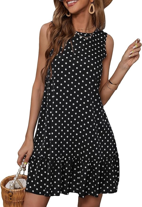 • ✨ Ruffle hem tunic shift tank mini dress summer sleeveless casual smock dresses for women
