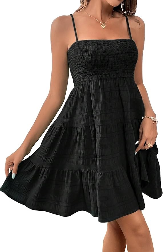 Feature: Sleeveless, adjustable straps, open back, ruffle hem, solid color, fashion A line dress for women, matching with your rhinestone drop earrings, necklace and heels for an attractive look