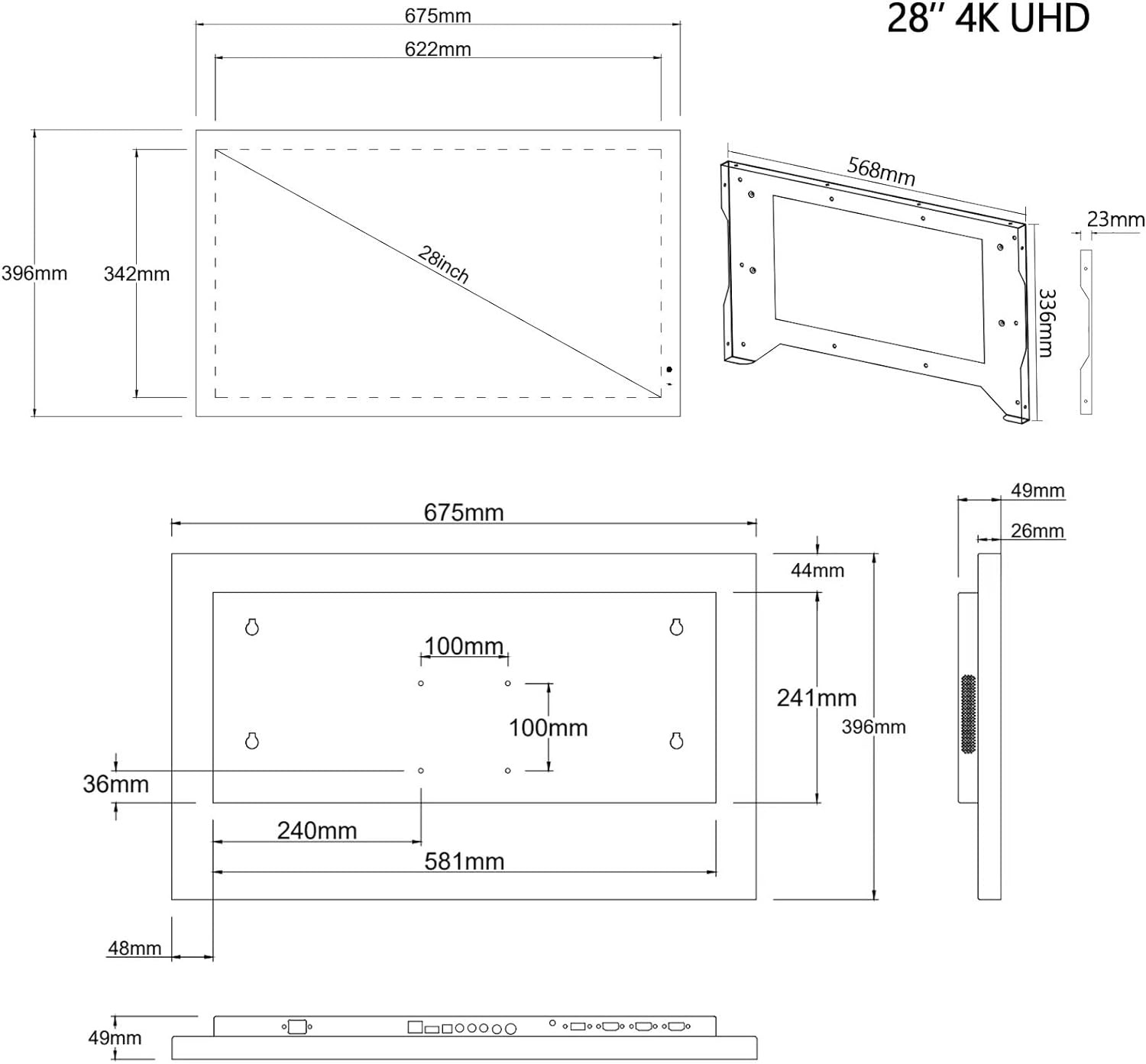 TV Dimensions675.4Wx395.7Hx 49.3Dmm (26.6”W x 15.6”H x 2”D