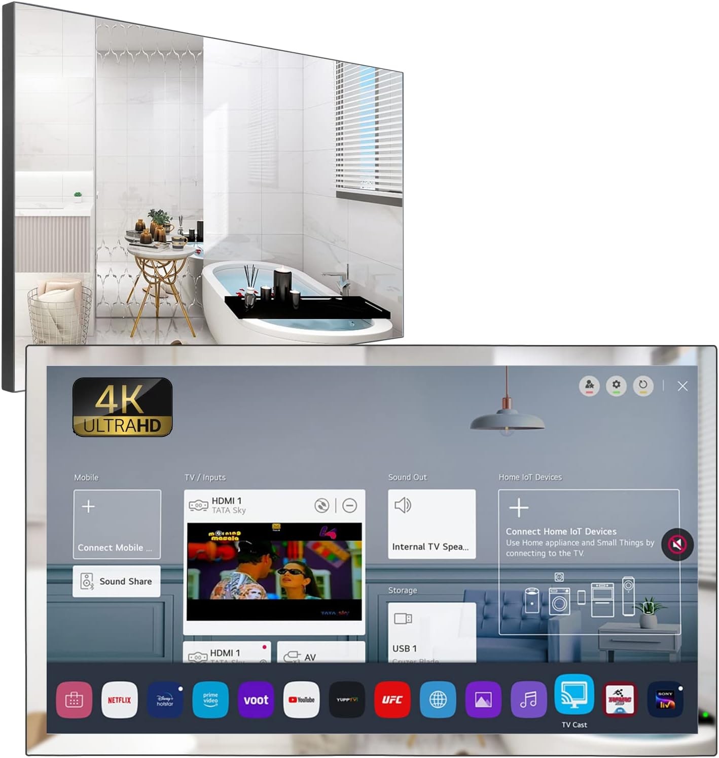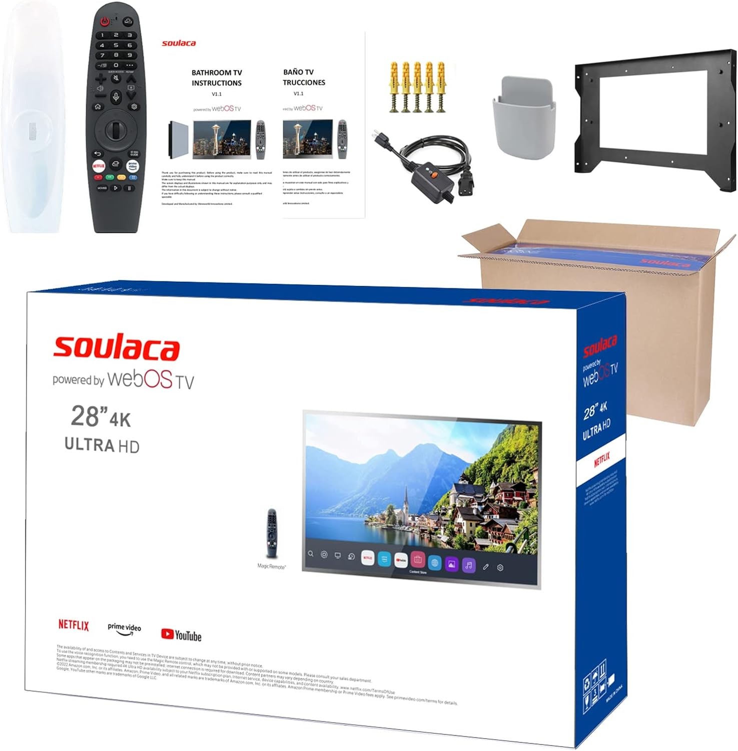 Soulaca 28" inches Smart webOS Bathroom 4K LED TV Mirror Waterproof ATSC WiFi Hotel Bluetooth 2024 New Model