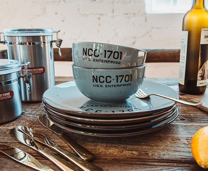 • ADVANCED STARFLEET TECHNOLOGY: Trekkies can fill up on their favorite meals with this BPA-free ceramic dish set aboard their starship. Easy to maintain, it's suitable for both microwave and top-rack dishwasher.