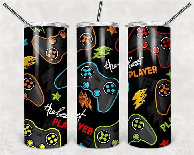 SupBo 20oz Skinny Tumbler With Lid and Straw, Gifts for Man, Dad Birthday Gifts, Travel Mug For Father, Stainless Steel, Double Wall, Vacuum Sealed Travel Mug (The Best Player Gamer)