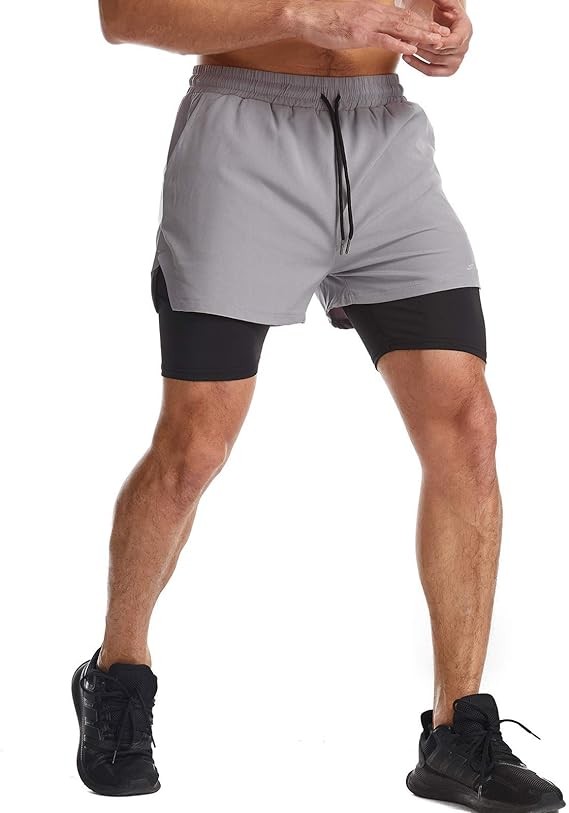 Surenow Mens 2 in 1 Running Shorts Quick Dry Athletic Shorts with Liner, Workout Shorts with Zip Pockets and Towel Loop