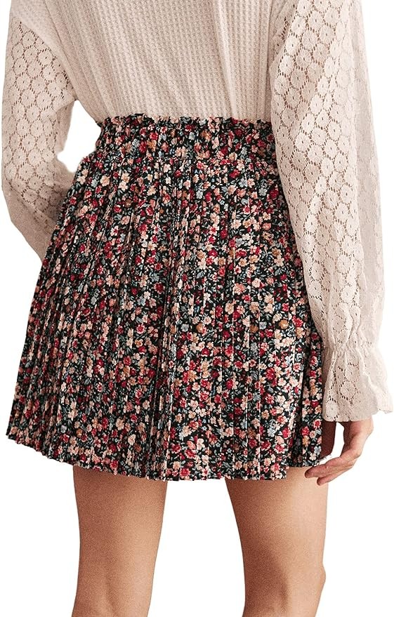 SweatyRocks Women's High Waist Mini Pleated Skater Skirt Flared A-Line Floral Short Skirt