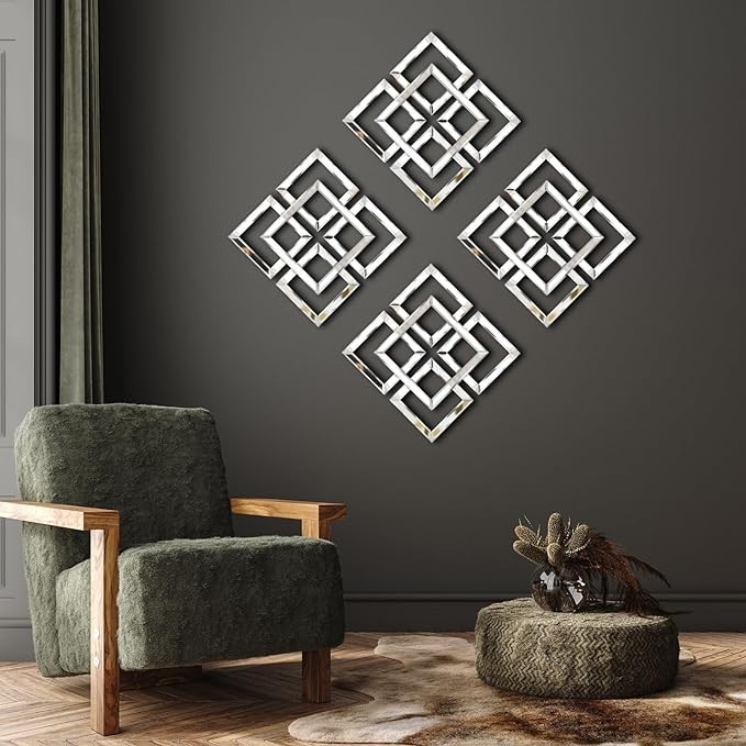 Satisfy Your Decoration Needs: you will be provided with 4 sets of mirrored wall art decor in the package in total, each piece adopts 5 squares in an orderly combination, a rich amount that can meet your use and decoration needs easily