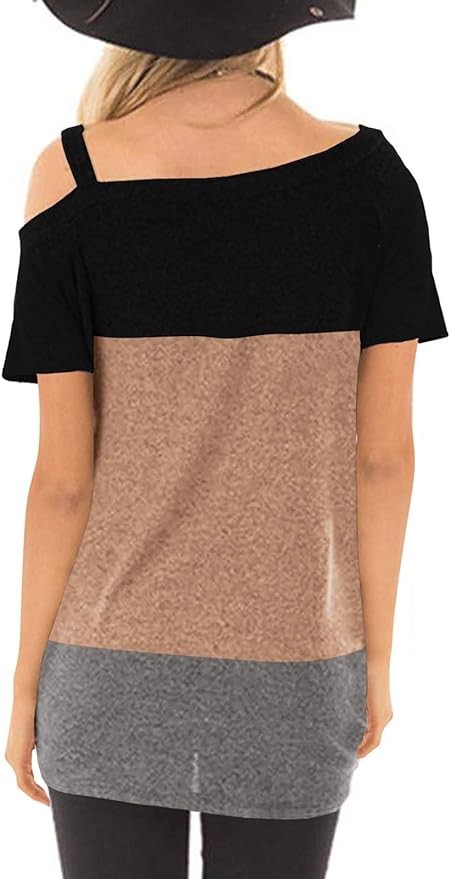 Design: One shoulder cold tops, side twisted knot short sleeve t shirts, solid color fashion shirts for women