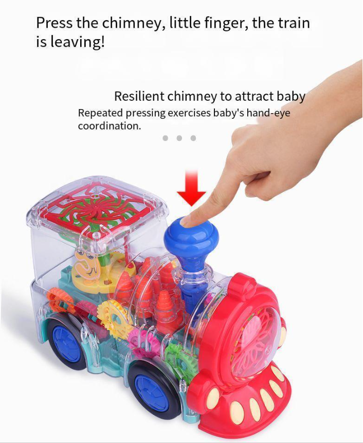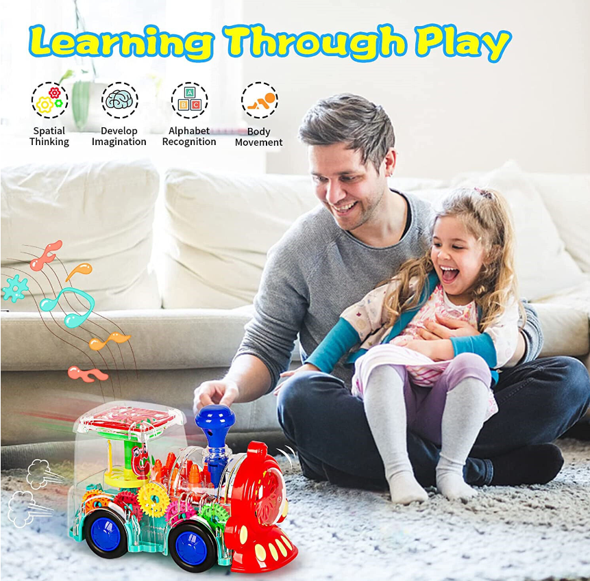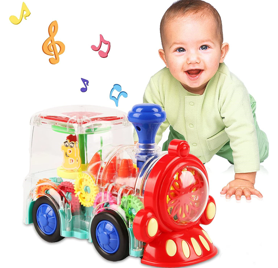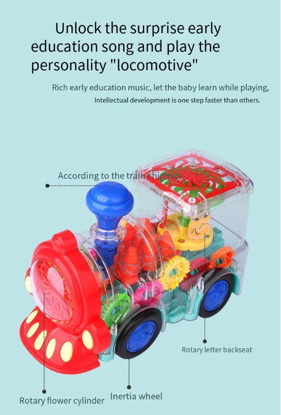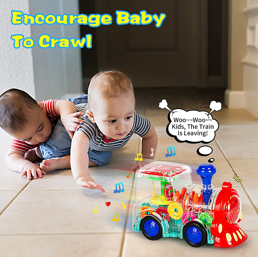 Train toys move with the sound effect of the engine, attracting babies to crawl and chase for fun. Baby likes to run with the train, like the light and sound it makes! Very suitable for babies to develop motor skills and learn how to control big muscles!