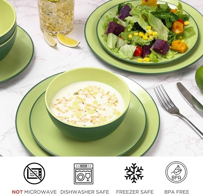 TP 12-Piece Dinnerware Set, Melamine Dishes Set with Bowls and Plates, Non-breakable Lightweight Dinner Service for 4, Avocado Green