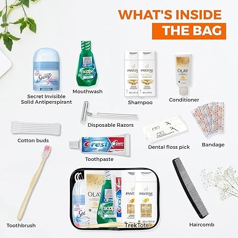 • *TrekTote Travel Convenience Kit - Your On-the-Go Companion!* Be travel-ready with our compact and TSA-compliant Travel Convenience Kit. Packed with essential travel-size toiletries and accessories, it's perfect for leisure or business trips. Stay fresh and prepared throughout your journey with TrekTote.