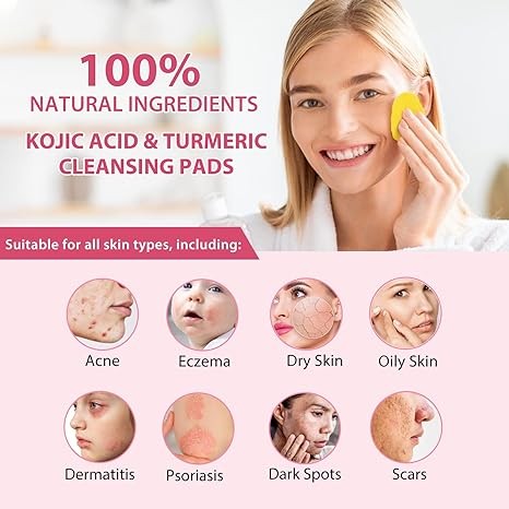 • 【Turmeric Kojic Acid Cleansing Pad】Turmeric Kojic Acid Pads can gently cleanse pores, leaving skin refreshed, radiant. Suitable for daily face wash, deep pore cleansing, exfoliation, dirt removal and makeup application.