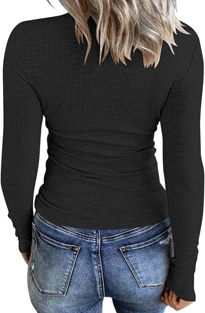 • Features: Lace trim v neck, front ruched, button up, ribbed, slim fit, basic long sleeve henley shirts.