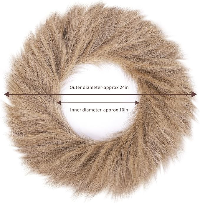 • PREMIUM CRAFTSMANSHIP: This pampas grass wreath is crafted from high-quality silk, giving it a lush and natural appearance. Each wreath consists of 108 pampas stems, ensuring a dense and fluffy composition. With a diameter of approximately 24", it creates an eye-catching focal point that complements various design styles.