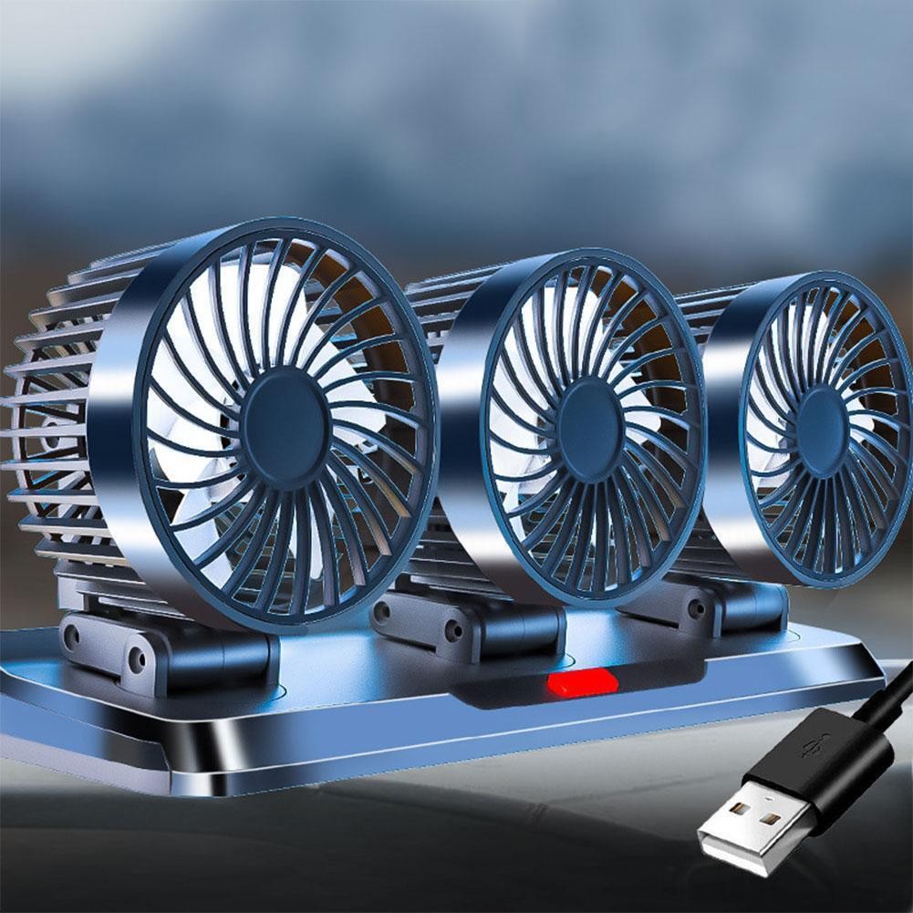 USB Car Fans Dual Head 360° Rotation, Powerful Cooling Fan