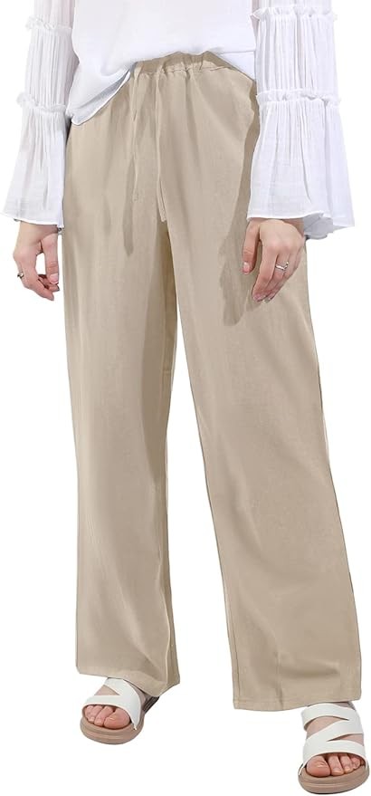 utcoco Women's Cotton Linen Drawstring High Waisted Pants Casual Loose Fit Wide Leg Trousers