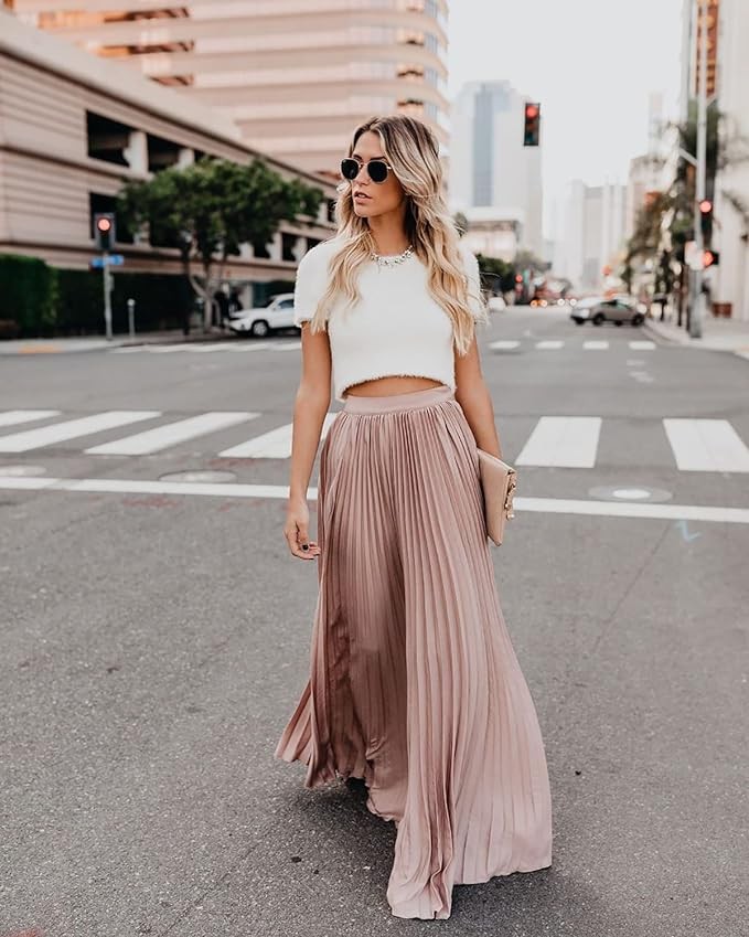 • 【FEATURE】The long skirts for women feature pleated design, chic and elegant. Elastic high waist make it easy to put on and take off. The womens pleated midi skirt is trendy and versatile, a must-have item for women's wardrobe.
