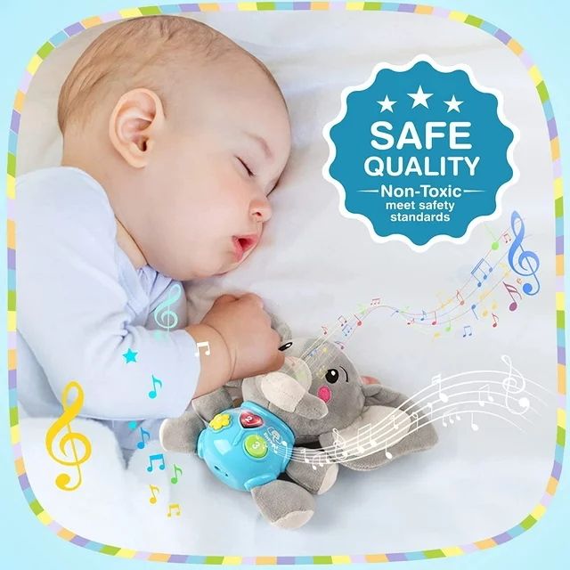 • Musical And Light Up Toys:�Very cute elephant and the buttons press the button will fa music, soft light, and sounds, Shake the elephant causes babies to laughter. It can not only make babies fall asleep but also keep them active.