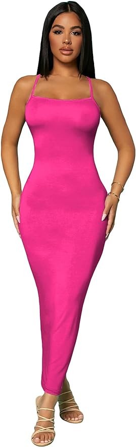 Verdusa Women's Criss Cross Backless Spaghetti Strap Long Cami Bodycon Dress