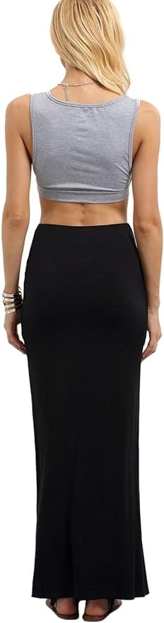 Verdusa Women's Solid Color High Waist Side Split Maxi Skirt