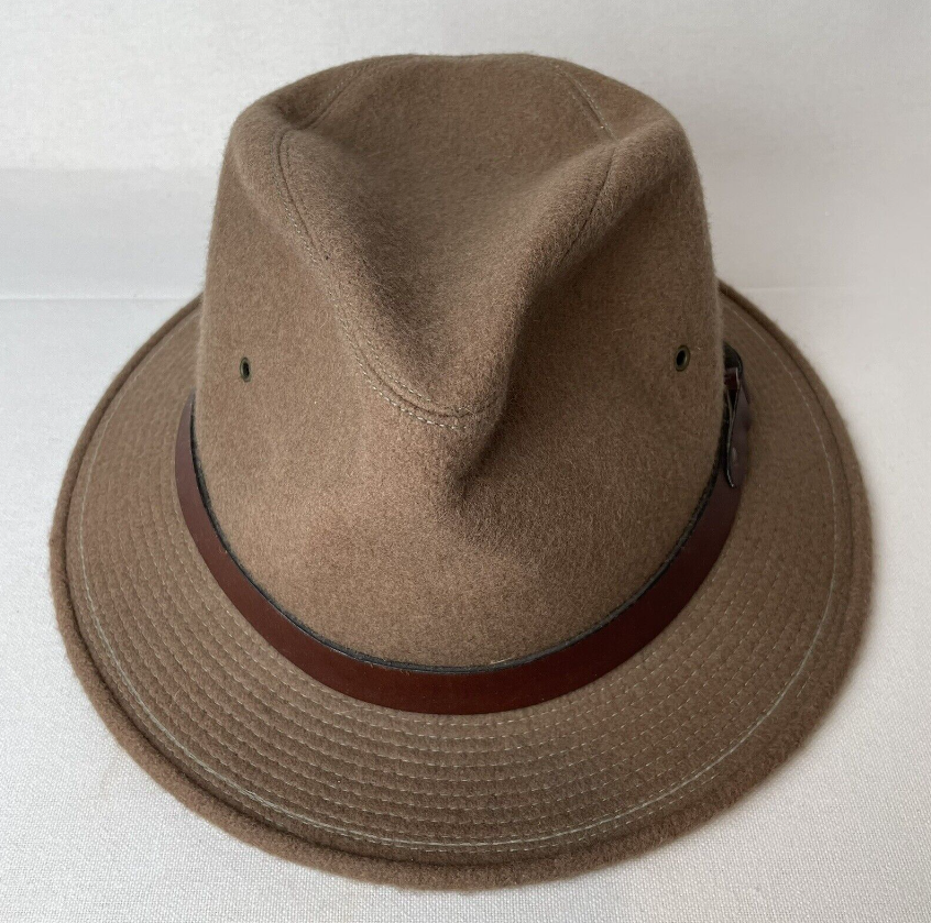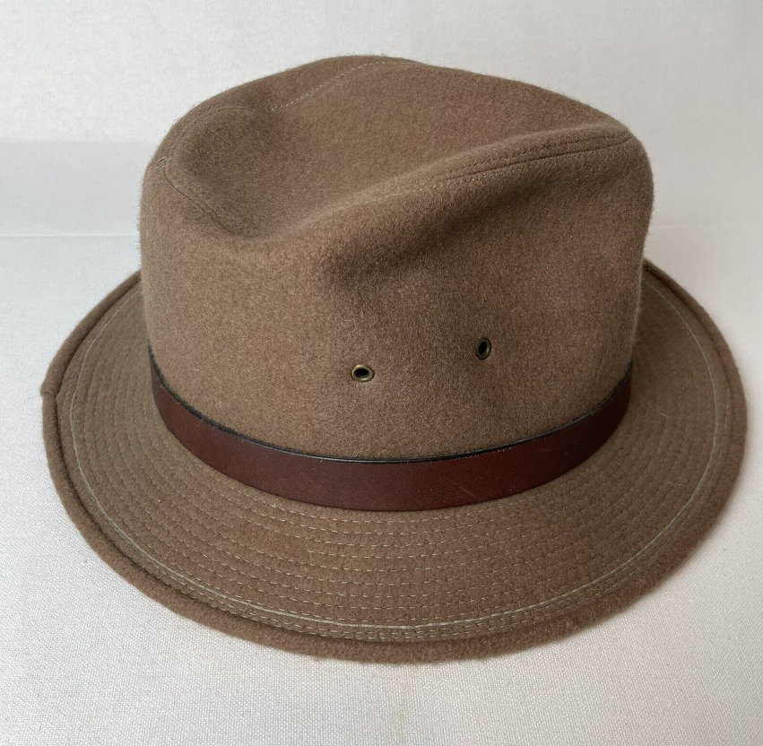 Vintage Backtrails by DOBBS Wool Fedora Safari Hat Tan Sz. LARGE 7¼-7⅜.