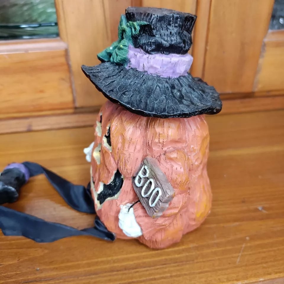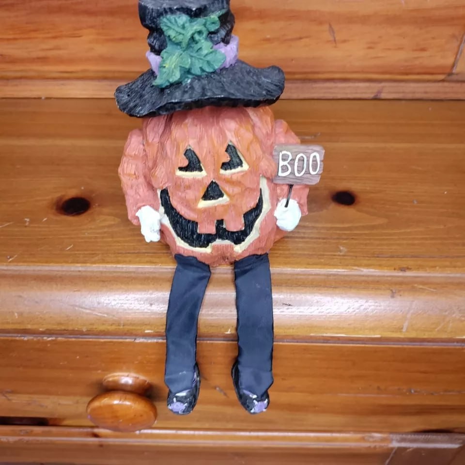 Vintage Jack O Lantern Pumpkin Shelf Sitter Boo Halloween Resin Figurine 8"