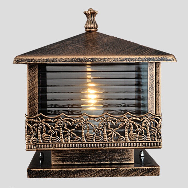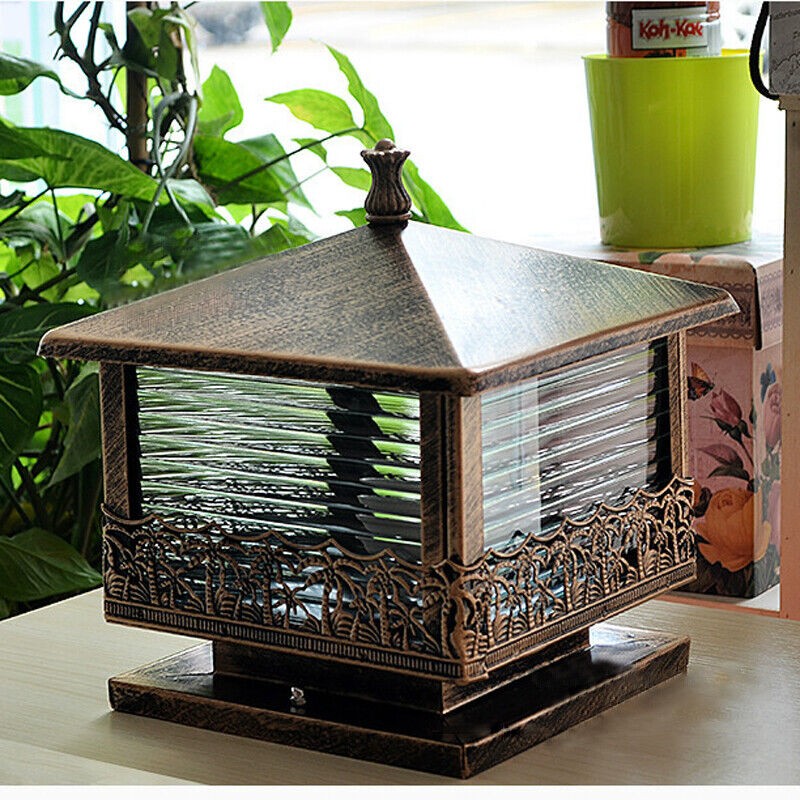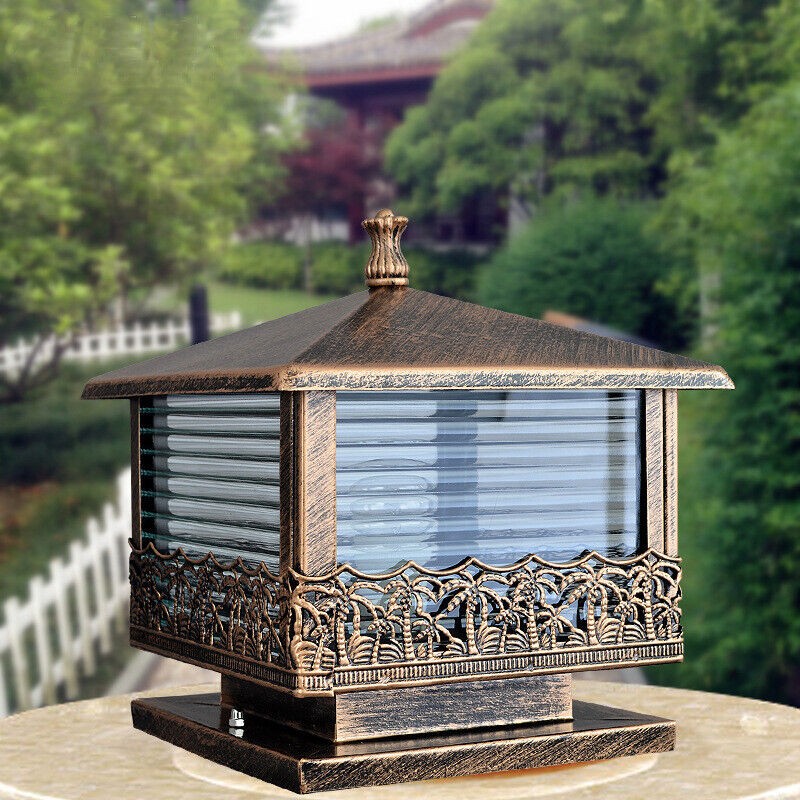 Vintage Pillar Light Garden Yard Gate Post Lamp Glass Lantern Outdoor Lighting