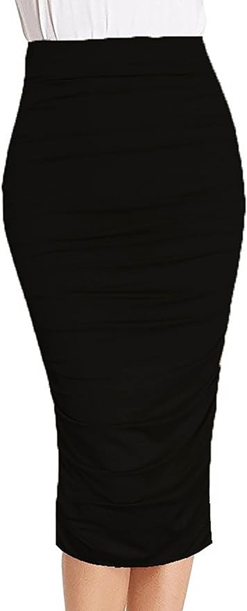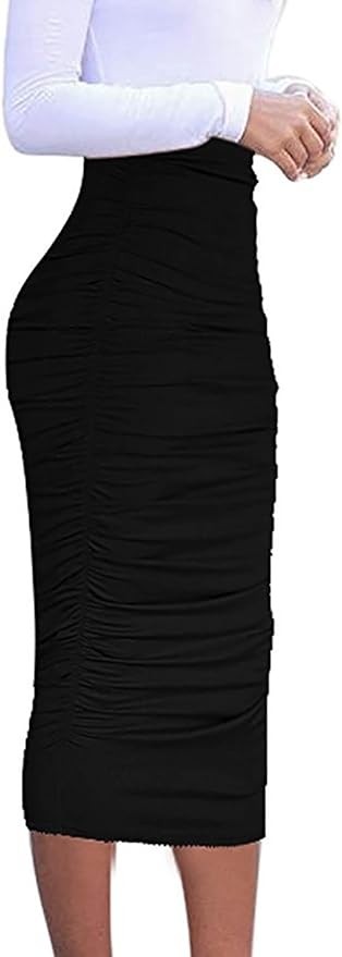Vivicastle Women's USA Ruched Frill Ruffle High Waist Pencil Mid-Calf Skirt
