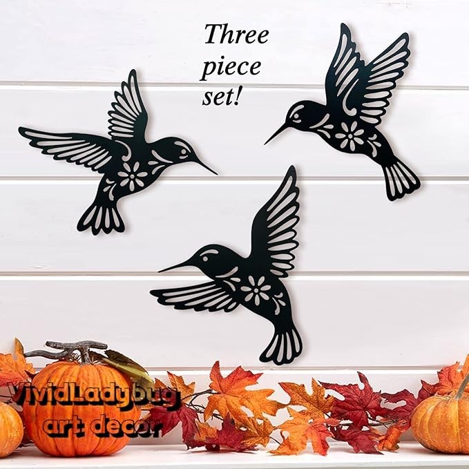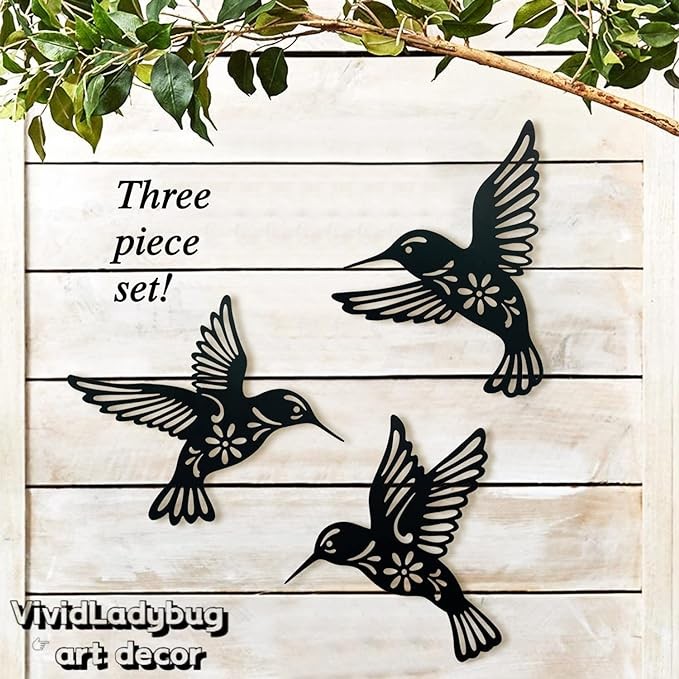 VividLadybug Metal hummingbird wall art decor, 9inch set of 3 black Concise Decoration Hanging for living room bedroom bathroom Kitchen Patio Balcony House indoor outdoor, unique gift choice