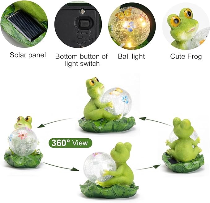 ?【IP44 Waterproof 】Frog garden statues are made of durable resin and treated with UV protection,durable enough to withstand changing weather conditions without cracking and fading. So you can keep the frog statues outdoors even in rainy or snowy weather