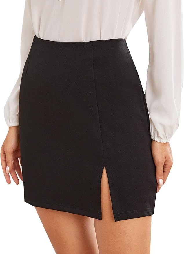 WDIRARA Women's Summer Solid Split Hem Zip Back Mini Workwear Skirt