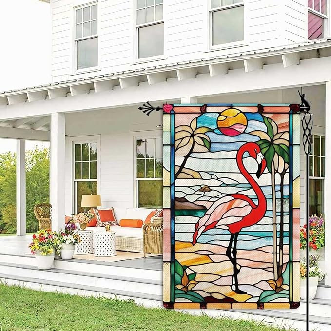 • ?️DOUBLE SIDED FLAG -- This Summer Flamingo Garden Flag is double sided with the image printed and visible from both sides and text also reads correctly from both sides. ( Flag Pole NOT included)