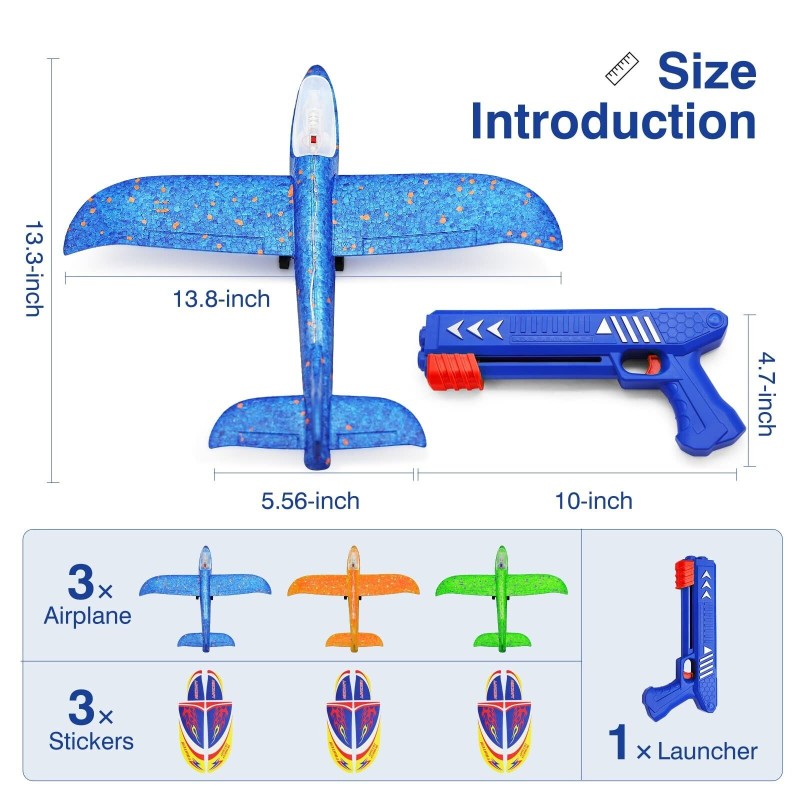 Wesfuner 3 Pack Foam Airplane Launcher Toys, 2 Flight Mode Glider Plane,Kids