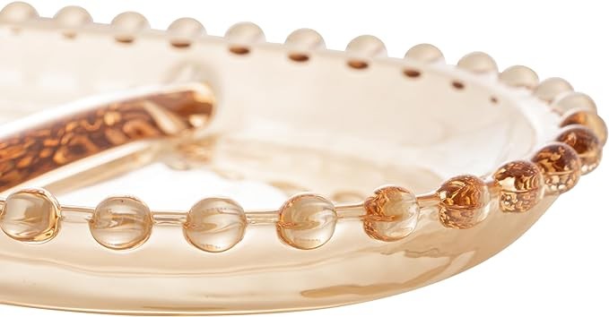 WOLFF - Oval Crystal Serving Plate - Pearl Beaded Details, Divided Platter Dish, Sectional Tray for Snacks, Appetizer, Nuts or Sweets - Hosting Luxury Glasswear, Decorative Dinner Accessories - Amber