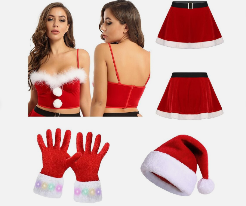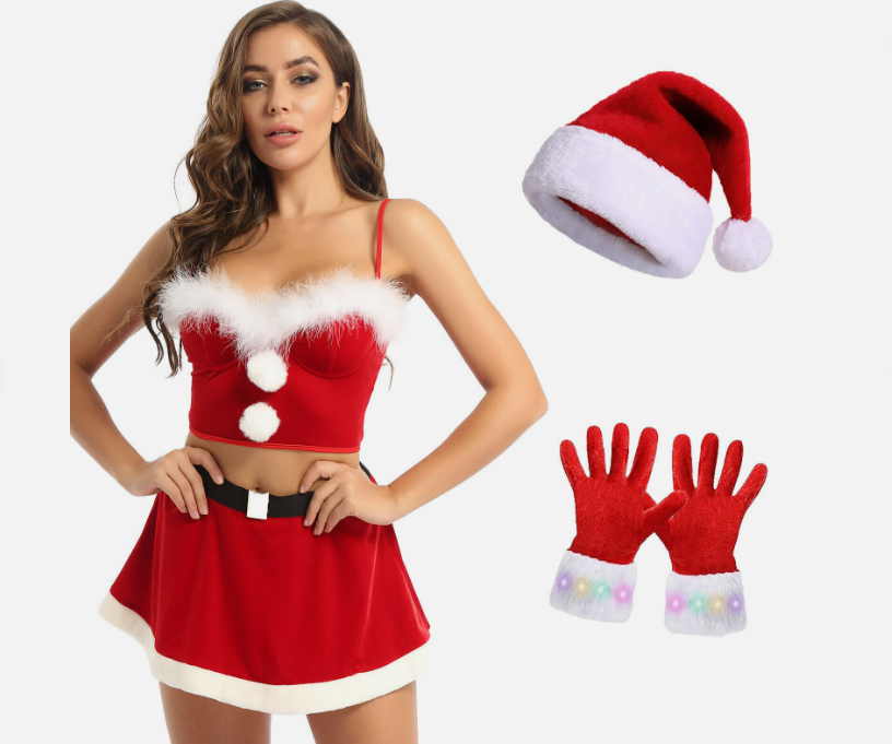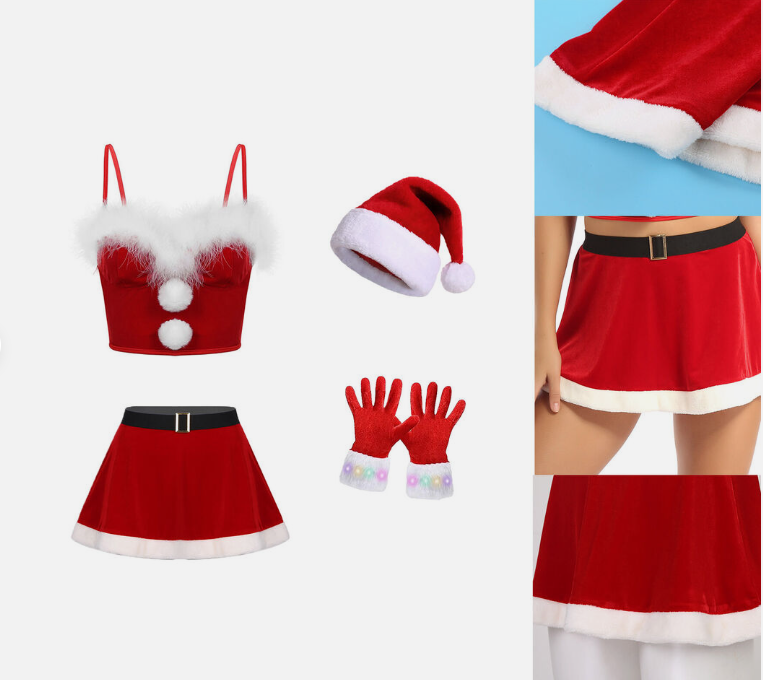 Set Include: 1Pc Crop Top, 1Pc Skirt, 1Pc Hat, 1 Pair Gloves