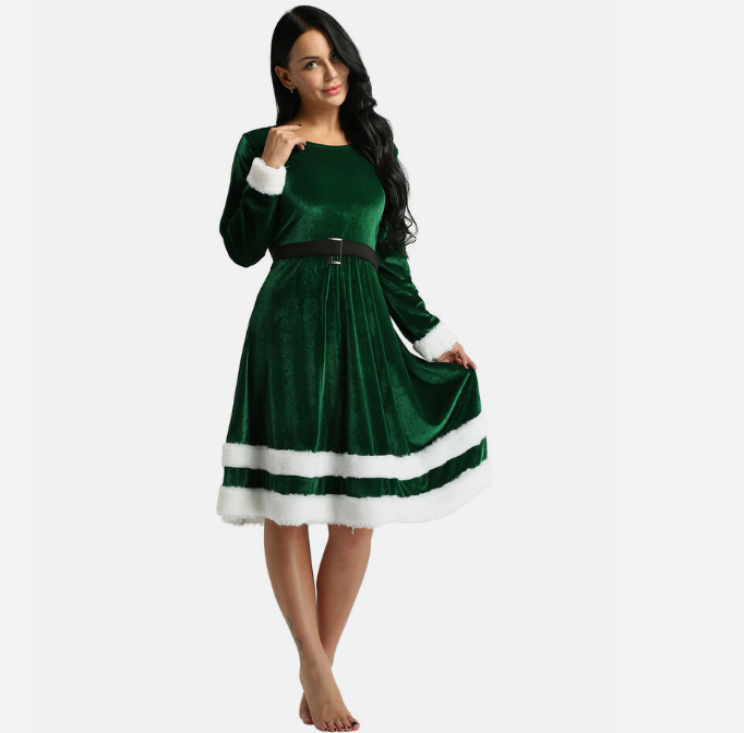 Paired with a black belt at waist and a hat will stand you out on Christmas Eve. Made of soft velvet fabric, comfortable to wear.